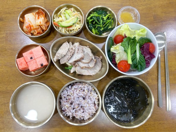 잡곡밥/ 누룽지/ 미역국/ 수육/