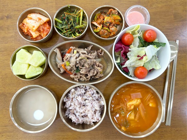 잡곡밥/ 누룽지/ 김치찌개/ 소고기표고볶음/