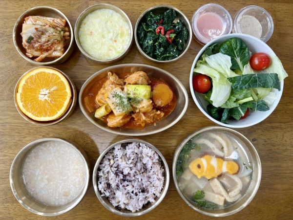 계란찜/ 시금치홍고추무침/김치/