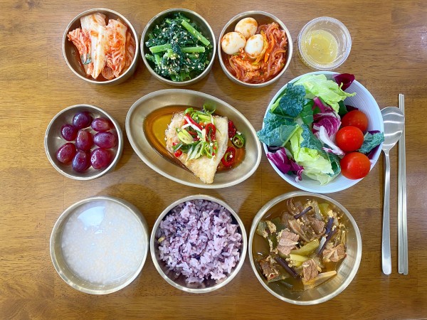 잡곡밥/ 누룽지/ 파개장/ 구운가자미유린기/