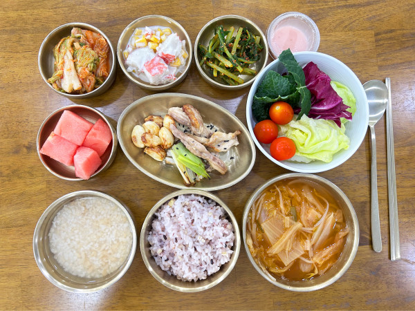 잡곡밥/ 누룽지/ 김치국/ 닭목살대파구이/