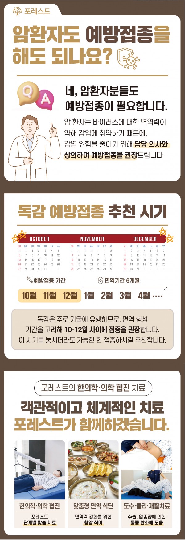 최근 독감 예방접종이 시행되고 있는데요, 특히 암 환자에게는 독감으로 인한 합병증의 위험이 높아,