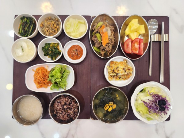 3월 28일 항암식단 [3/28 금요일 중식] 잡곡밥/누룽지/홍합살미역국/소고기청경채볶음/ 잔멸치흰콩조림/얼갈이나물/녹두전(라이브)/ 절단상추*무생채/양배추쌈/김치&물김치/ 계절샐러드 목록
