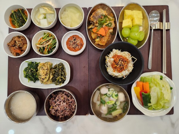 2월 4일 항암식단 [2/4 화요일 중식] 잡곡밥/누룽지/토란국/매콤코다리찜/ 콩나물밥(라이브)/돈장조림/참나물겉절이/ 유채*호박고지*취나물/양배추쌈/ 김치&물김치/계절샐러드/파인애플&포도 목록