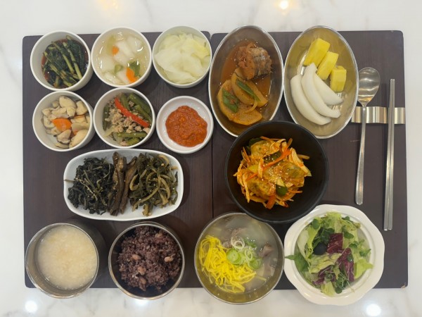 8월 27일 항암식단 [8/27 화요일 중식] 잡곡밥/누룽지/설렁탕/코다리무조림/ 비빔만두(라이브)/돈민찌그린빈볶음/ 총알새송이버섯볶음/ 고추잎나물*시래기나물*건가지/ 양배추쌈/김치&물김치/ 계절샐러드&참외*파인애플 목록