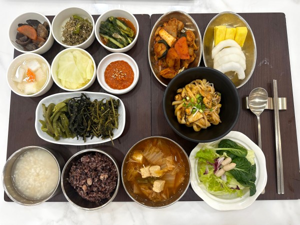9월 12일 항암식단 [9/12 목요일 중식] 잡곡밥/누룽지/김치국/닭갈비/꽈리고추멸치조림/ 양송이버섯볶음/궁채*취나물*참나물/김치/ 계절샐러드/파인애플&참외/(라이브)야끼우동 목록