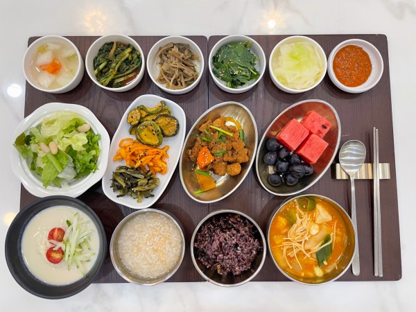 8월 6일 항암식단 [8/6 화요일 중식] 잡곡밥/누룽지/애호박고추장찌개/순살돼지갈비찜/ 고구마순나물/방풍나물무침/시래기나물*호박고지나물*무생채/ 콩국수(라이브)양배추쌈*쌈장/김치&물김치/계절샐러드/수박*포도 목록