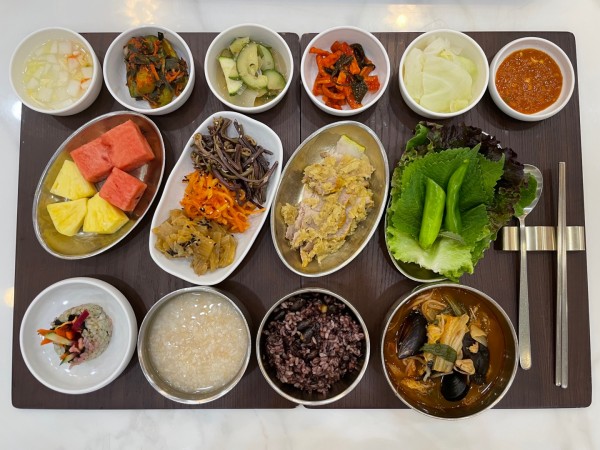 6월 19일 항암식단 [6/19 수요일 중식] 잡곡밥/짬뽕탕/마늘보쌈&모둠쌈채/ 무말랭이무침/애호박버섯볶음/ 김치&물김치/무생채*고사리나물*묵은지지짐/ 수박&파인애플/(라이브)누드김밥 목록