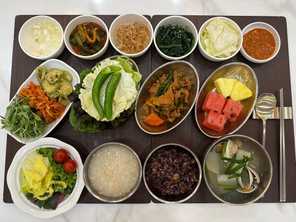 6월 22일 항암식단 [6/22 토요일 중식] 잡곡밥/누룽지/부추모시조개국/ 제육볶음&모둠쌈채/오징어실채볶음/ 시금치나물무침/무생채*호박나물고지*돌나물/ 김치&물김치/계절샐러드/파인애플&수박 목록