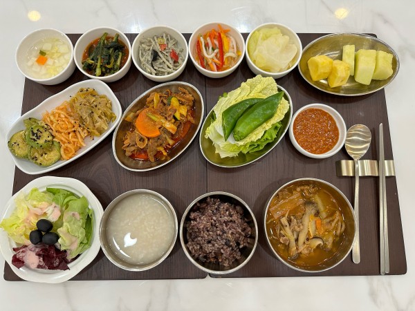 5월 25일 항암식단 [5/25 토요일 중식] 잡곡밥/누룽지/파개장/오리주물럭&모둠쌈채/ 해파리냉채/우엉채흑임자무침/ 호박고지나물*묵은지지짐*무생채/ 물김치&김치/계절샐러드/피인애플&메론 목록