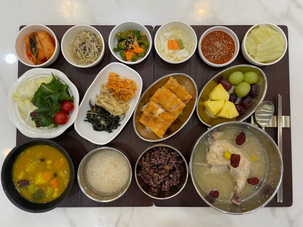 5월 2일 항암식단 [5/2 목요일 중식] 잡곡밥/누룽지삼계탕/오징어김치전/ 숙주나물무침/아삭이고추무침/ 고춧잎나물*무생채*도라지나물/ 김치&물김치/계절샐러드/ 포도&파인애플/(라이브)콩카레 목록