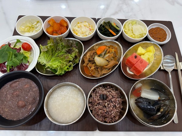 12월 22일 항암식단 [12/22 금요일 중식] 잡곡밥/누룽지/홍합탕/ 콩나물불고기&모둠쌈채/ 오븐콘치즈/레몬미역초무침/ 김치&물김치/(라이브)새알팥죽/ 계절샐러드/수박&파인애플 목록