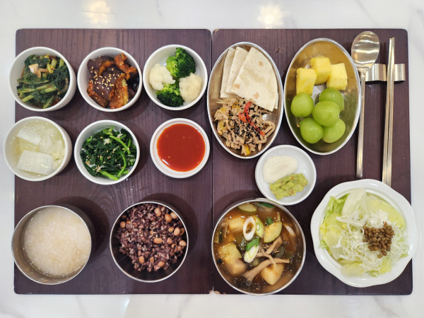 12월 6일 항암식단 [12/6 토요일 중식] 잡곡밥/누룽지/느타리고추장찌개/돈채파프리카볶음 &또띠아/가지양념구이/쑥갓나물/컬리숙회/ 김치&물김치/계절샐러드/파인애플&샤인머스켓 목록