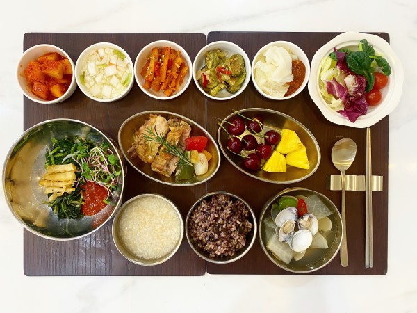 8월 5일 항암식단 [8/5 토요일 중식] 잡곡밥/ (라이브별식)비빔밥/ 백합조개탕/ 치킨스테이크&고르곤졸라소스/ 도라지고추장구이/ 호박고지나물/ 깍두기/ 계절샐러드/ 파인애플&체리 목록