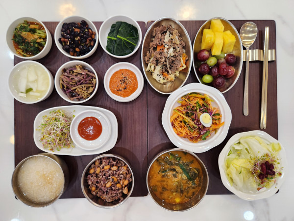 6월 24일 항암식단 [6/24 화요일 중식] 잡곡밥/누룽지/추어탕/소고기양배추볶음/ 모둠콩조림/고사리나물볶음/비빔국수(라이브)/ 모둠새싹/케일숙쌈/김치&물김치/계절샐러드/ 파인애플&포도 목록