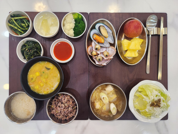 잡곡밥/누룽지/배추된장국/홍가리비&그린홍합찜/