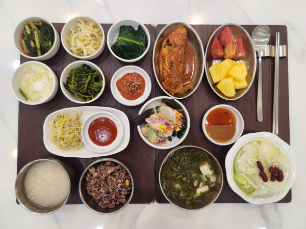5월 20일 항암식단 [5/20 화요일 중식] 잡곡밥/누룽지/냉이된장국/조기양념구이/ 도라지유자무침/참나물고추장무침/월남쌈(라이브)/ 콩나물무침/케일쌈/김치&물김치/계절샐러드/ 파인애플&토마토 목록