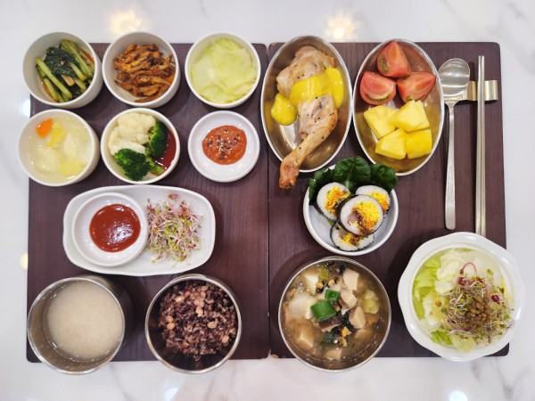 5월 2일 항암식단 [5/2 금요일 중식] 잡곡밥/누룽지/우렁된장찌개/장각구이*머스타드/ 고추장멸치볶음/컬리숙회*초장/김밥(라이브)/ 모둠새싹/양배추쌈/김치&물김치/계절샐러드/ 파인애플&토마토 목록
