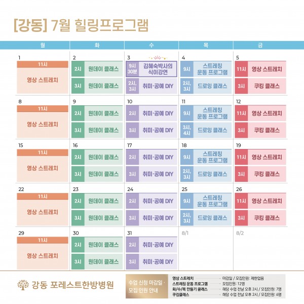 포레스트의 7월 힐링프로그램을 소개합니다!