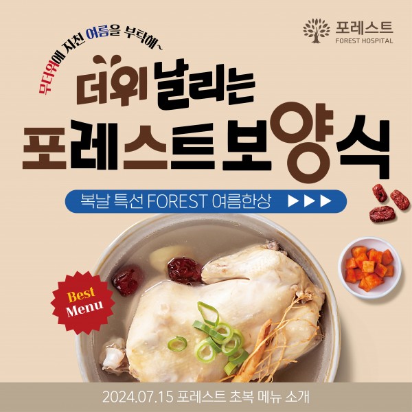 신선한 재료와 정성을 가득 담아 준비한 이번 초복 식단이 여름 나기에 큰 힘이 되길 바라겠습니다