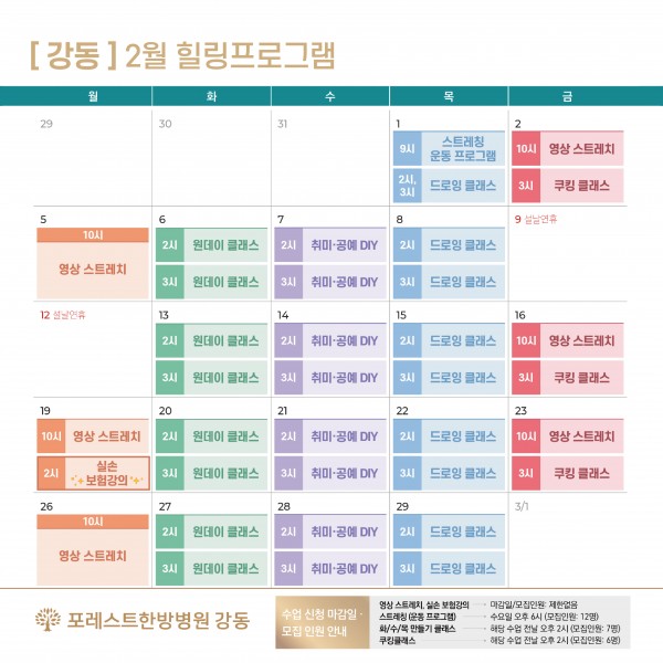 강동 2월 힐링프로그램