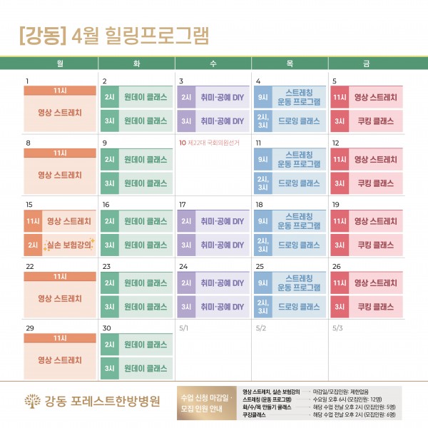 4월달도 다양한 활동들로 힐링클래스를 채웠습니다 :)