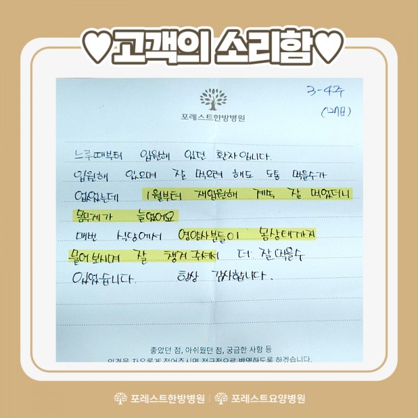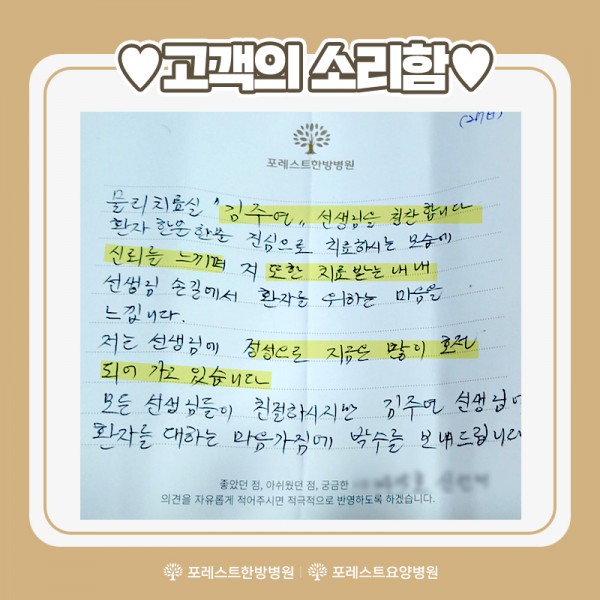 환우분들의 말씀에 귀담아 더욱 발전하는 포레스트가 되겠습니다.^^♥