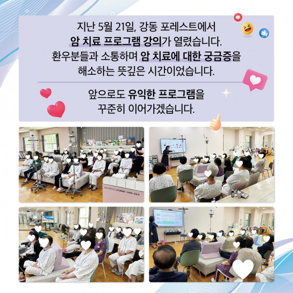 지난 5월 21일, 강동 포레스트에서는 환우분들과 함께하는 암 치료 프로그램 강의가 열렸습니다!