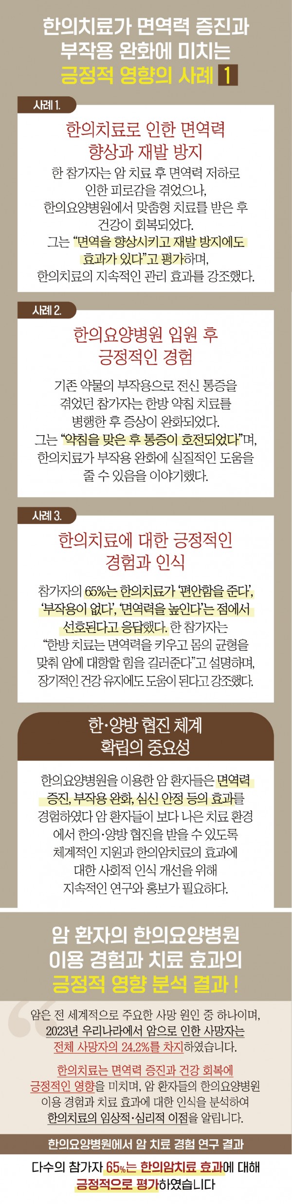 이번 연구는 한의요양병원을 이용한 암 환자분들의 실제 경험을 바탕으로,