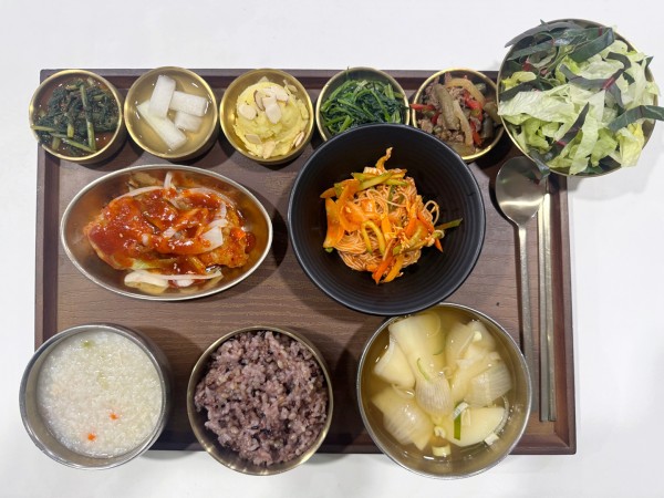 잡곡밥/닭죽/감자양파국/코다리강정/