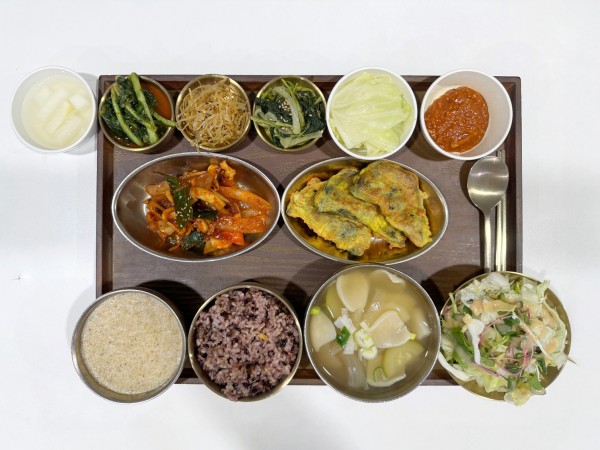 잡곡밥/들깨죽/감자수제비국/오징어볶음/