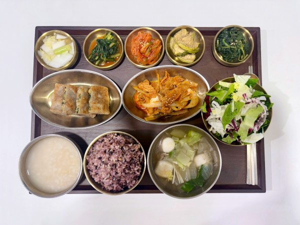 잡곡밥/누룽지/토란국/제육볶음/메밀전병/