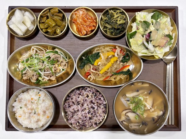 잡곡밥/소고기죽/버섯탕/숙주우삼겹볶음/