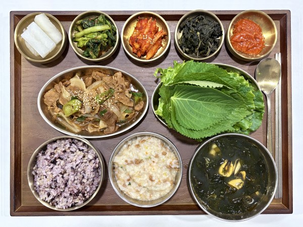 잡곡밥/소고기죽/홍합미역국/돼지불백/