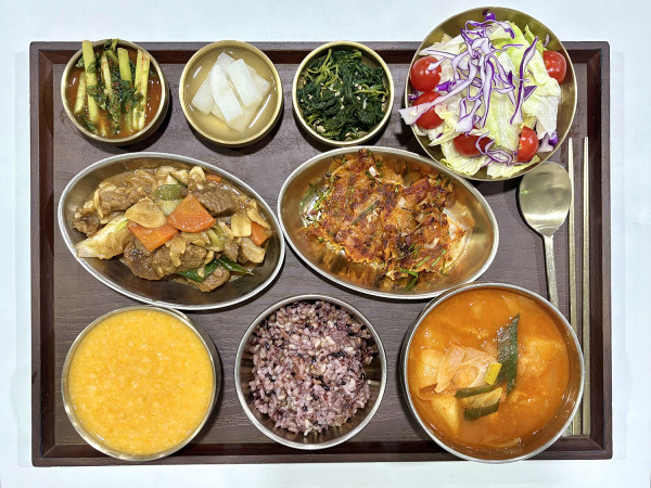 잡곡밥/단호박죽/감자짜글이/마늘우사태찜/