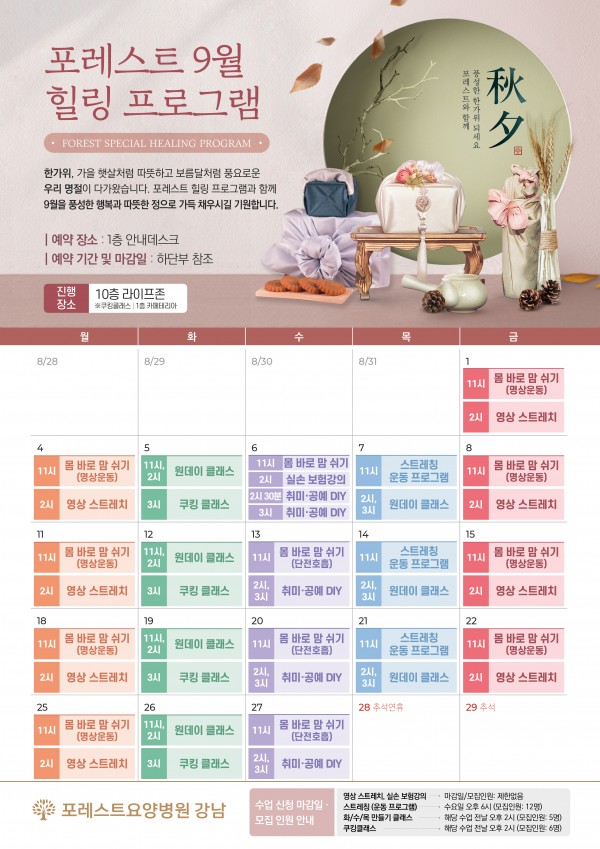 포레스트의 9월 힐링프로그램을 소개합니다.