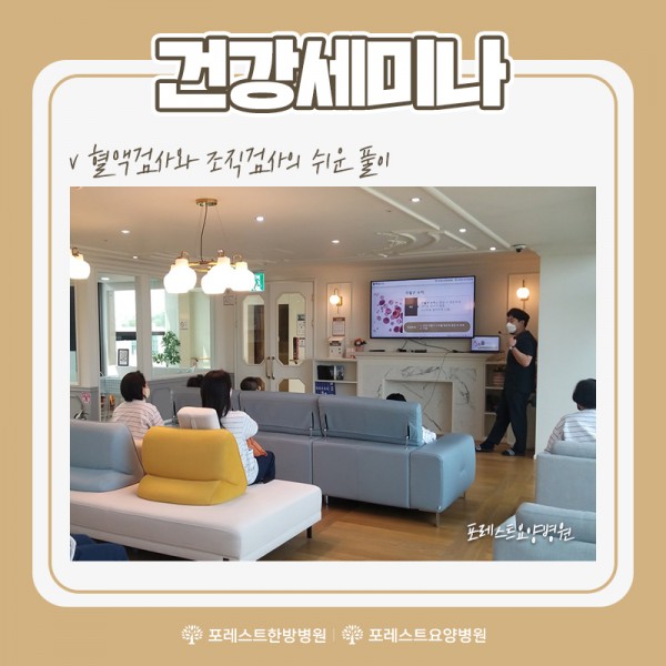 건강 세미나 지난주 포레스트한방병원 강동, 포레스트요양병원 강남에서는 혈액검사와 조직검사의 쉬운 풀이라는 주제로 포레스트환우분들을 위한 3회차 건강세미나가 진행되었습니다. :) 많은 환우분들이 함께 참여하셔서 이대연 대표병원장님의 강의에 경청하시고 메모해 가셨습니다~ㅎㅎ 포레스트는 환우분들께 건강에 도움이 되는 정보를 전달 드리기 위해서 더욱 유익한 강의를 준비하겠습니다 감사합니다 ^^ 목록