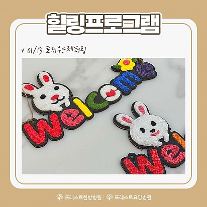 Hot 포레스트한방병원·요양병원 | 통합 연구소 이호성 R&D센터장 "경희대학교 한의학과 졸업 의료분야 학문 연구 및 역량 개발을 위해 카이스크 의과학대학원에 진학하였고 종양생물학&시스템생물학 … 2023.01.27 Hot 힐링프로그램-토끼 우드레터링 23년 계묘년을 맞이하여 포레스트(강남,강동)에서는 "토끼 우드레터링"만들기를 진행하였습니다. 친환경적인 우드 재료를 활용… 2023.01.18 Hot 코로나19 안심대응 포레스트한방병원·요양병원은 환자분들께서 안심하시고 내원하실 수 있도록 코로나 대응에 최선을 다하겠습니다. 코로나19 방역… 2023.01.12 Hot 1월 힐링프로그램 2023년 계묘년이 밝았습니다. 새해를 맞이하여 알차게 준비한 포레스트한방병원·요양병원 힐링프로그램 소식을 전달드립니다.… 2023.01.05 Hot 특식이벤트 1월 3일 화요일! 포레스트 김성호 요리연구가, 조영호 셰프와 함께하는 이번주 특식 메뉴는 유자폰즈소스와 파를 곁들인 … 2023.01.05 Hot 2023년 1월 외래진료 시간안내 2023년 1월 외래진료 시간표 2023.01.01 Hot 2022년 12월 외래진료 시간안내 2022년 12월 외래진료 시간표 2022.12.01 Hot 2022년 11월 외래진료 시간안내 2022년 11월 외래진료 시간표 2022.11.01 Hot 2022년 10월 외래진료 시간안내 2022년 10월 외래진료 시간표 2022.10.01 1617181920 Search 검색대상 제목 내용 제목+내용 회원아이디 회원아이디(코) 글쓴이 글쓴이(코) 검색어 필수