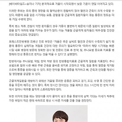 Hot [베이비타임즈]추위로 인해 ‘찌릿’한 관절 통증, 치료와 예방법은? [베이비타임즈=송지나 기자] 본격적으로 겨울이 시작되면서 낮은 기온이 연일 이어지고 있다. 이러한 추위는 우리 몸에 영향… 2021.05.18 Hot [메디소비자뉴스]한의사ㆍ호텔 셰프 '밥심 합작품'…환자 '약선식단’이 뜬다 체질에 따라 음식에 한약제 배합으로 면역력 향상…맛ㆍ건강 다잡아 불규칙한 식사 습관으로 건강이 나빠 본적 있는가? 건… 2021.05.18 Hot [Queen]포레스트한방병원, 암 환우들을 위한 ‘면역앤 비타쥬스’ 행사 열려 포레스트한방병원이 지난 23일 암 환자들을 위한 ‘면역앤 비타쥬스’행사를 열었다. 포레스트한방병원 6층 식당에서 80분간… 2021.05.18 Hot [일간투데이]본격적인 겨울 추위 시작...효과 만점 감기 예방법은? [일간투데이 이성자 기자] 아침, 저녁으로 제법 쌀쌀한 기운이 맴돌고 있는 요즘 사람들의 옷차림 역시 점점 두꺼워지며 본격적인… 2021.05.18 Hot [헬스경향] 포레스트한방병원, SCI급 국제학술저널 논문 등재 포레스트한방병원이 11일 이대연 병원장, 이인희 연구소장의 공동 연구 논문이 9월 SCI급 국제학술지에 등재됐다고 밝혔다. … 2021.05.18 Hot [이투데이] 포레스트한방병원, SCI급 국제학술저널 논문 등재 이대연 포레스트한방병원 병원장과 이인희 연구소장의 공동 연구 논문 ‘Herbal Medicine FDY003 Inhibits … 2021.05.18 Hot [Queen] 포레스트한방병원, 암 환우들을 위한 '힐링원예테라피'개최 포레스트한방병원이 지난 25일 암 환자들을 위한 ‘힐링 원예테라피’를 개최했다. 포레스트한방병원은 매일 무서운 질병과 싸… 2021.05.18 Hot 추석연휴, 암 환우들이 주의해야 할 식단은? 암환우 추석연휴 식생활 포레스트한방병원 영양팀을 통해 추석 연휴동안 암환자가 주의해야 할 사항에 대해 알아보았습니다. … 2021.05.18 Hot 전라일보,국제뉴스,대학저널,대학신문.-원광보건대학교 임상병리과, 포레스트한방병원과 연구 및 교육협력 MOU 체결 원광보건대학교(총장 백준흠) 임상병리과가 최근 암면역치료를 제공하고 있는 포레스트한방병원과 산학협력 MOU를 체결했다고 6일 … 2021.05.18 2122232425 Search 검색대상 제목 내용 제목+내용 회원아이디 회원아이디(코) 글쓴이 글쓴이(코) 검색어 필수