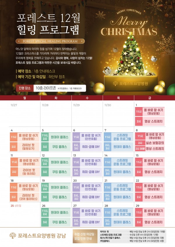 12월에도 다양한 힐링프로그램들 준비했습니다.