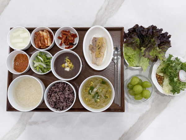 12월 22일 항암식단 [12/22 월요일 중식] 잡곡밥/누룽지/콩나물국/마늘보쌈/동지팥죽(라이브)/ 미나리무침/무말랭이무침/상추쌈&오이고추/ 보쌈김치&물김치/계절샐러드&샤인머스켓 목록