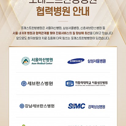 자궁내막암 3기, 박지혜 환우님의 희망일지 ep_1 | 포레스트 환우 이야기 2024.08.08 자궁내막암 3기, 박지혜 환우님의 희망일지 ep_2 | 포레스트 환우 이야기 2024.08.08 자궁내막암 3기, 박지혜 환우님의 희망일지 ep_3 | 포레스트 환우 이야기 2024.08.08 폐암 4기(비소세포암), 서중원 환우님의 희망일지 ep_1 | 포레스트 환우 이야기 2024.08.08 폐암 4기(비소세포암), 서중원 환우님의 희망일지 ep_2 | 포레스트 환우 이야기 2024.08.08 폐암 4기(비소세포암), 서중원 환우님의 희망일지 ep_3 | 포레스트 환우 이야기 2024.08.08 Hot 암 재발, 전이 그 이유는? [2편] 암 재발, 전이 그 이유는? 전이, 재발 되지 않으려면? 포레스트 이대연 병원장의 강의 2편입니다. ^^ 치료와 수술이… 2023.04.05 Hot 포레스트 4월 힐링프로그램 포레스트 4월의 힐링프로그램 안내입니다! 오늘(4일) 포레스트요양병원에서 이대연 대표 병원장님의 건강 세미나가 있었습니다… 2023.04.04 Hot 힐링프로그램-쿠킹클래스 포레스트한방병원, 포레스트요양병원에서 매주 진행하고 있는 쿠킹클래스입니다. 쿠킹클래스 시간에는 건강에 도움이 되는 음식을 환… 2023.03.28 Hot 암의 재발,전이 그 이유[1편] "암의 재발 전이 그 이유는?" 지난번 포레스트 환우분들 대상으로 진행한, 포레스트한방병원 이대연 대표 병원장의 세미나를 … 2023.03.24 Hot 포레스트 운동 프로그램 포레스트한방병원과 포레스트요양병원에서는 매주 목요일 스트레칭&근력운동 프로그램을 진행하고 있습니다.^^ 도수치료 팀장과 … 2023.03.23 Hot [포레스트 협력병원안내] ✔포레스트한방병원: 서울아산병원, 삼성서울병원, 세브란스병원, 가톨릭대학교서울성모병원, 강남세브란스병원, 강북삼성병원, 건… 2023.03.21 Hot 포레스트&의료법인 케이아이카이 그룹 MOU 체결 포레스트와 일본의 의료법인 케이아이카이 그룹이 MOU를 체결했습니다. 케이아이카이 그룹은 일본 도쿄, 오사카, 나라에서 BE… 2023.03.16 Hot 포레스트 이대연 대표 병원장의 건강 세미나 포레스트 환우분들만을 위한 포레스트 이대연 대표 병원장의 건강 세미나가 진행되었습니다. 평소 암재발,전이에 관한 내용에 … 2023.03.14 Hot 3월 포레스트 힐링프로그램 산뜻한 봄의 시작 3월이 되었습니다.^^ 봄바람이 살랑살랑 불어오는 3월에는 활짝 피어나는 예쁜 봄꽃처럼 포레스트 힐… 2023.03.02 1112131415 Search 검색대상 제목 내용 제목+내용 회원아이디 회원아이디(코) 글쓴이 글쓴이(코) 검색어 필수
