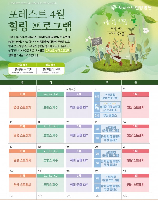 포레스트 4월의 힐링프로그램 안내입니다!