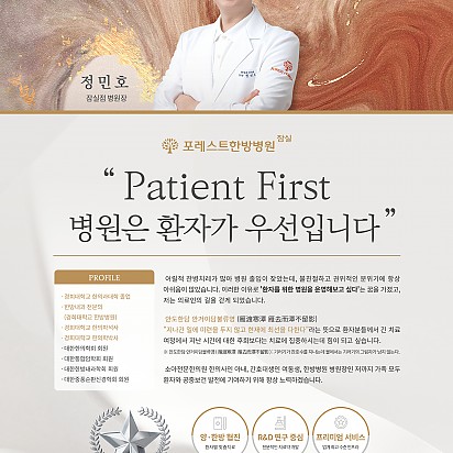 자궁내막암 3기, 박지혜 환우님의 희망일지 ep_1 | 포레스트 환우 이야기 2024.08.08 자궁내막암 3기, 박지혜 환우님의 희망일지 ep_2 | 포레스트 환우 이야기 2024.08.08 자궁내막암 3기, 박지혜 환우님의 희망일지 ep_3 | 포레스트 환우 이야기 2024.08.08 폐암 4기(비소세포암), 서중원 환우님의 희망일지 ep_1 | 포레스트 환우 이야기 2024.08.08 폐암 4기(비소세포암), 서중원 환우님의 희망일지 ep_2 | 포레스트 환우 이야기 2024.08.08 폐암 4기(비소세포암), 서중원 환우님의 희망일지 ep_3 | 포레스트 환우 이야기 2024.08.08 Hot 포레스트한방병원 연탄기부 봉사활동 안내 “포레스트한방병원과 더나은간호협회가 함께한, 사회 나눔으로 따뜻한 겨울, 연탄 기부 봉사 활동” 이번 겨울 포레스트한방병… 2022.03.08 Hot 포레스트한방병원 설 명절 특식 안내 "설맞이 명절 음식은 포레스트한방병원과 함께 하세요." 포레스트한방병원 광화문본점, 잠실점에서 전문쉐프들이 환우분들을 … 2022.01.26 Hot 포레스트한방병원 잠실점 정민호 병원장 소개 " Patient First 병원은 환자가 우선입니다 " 어릴적 잔병치레가 많아 병원 출입이 잦았는데, 불친절하고 권위… 2022.01.26 Hot 잠실 포레스트한방병원 의료진과 특급쉐프진이 함께하는 금주의 약선요리 잠실 포레스트한방병원 의료진과 특급쉐프진이 함께하는 금주의 약선요리 안내: ) 9월 28일 약선더덕제육볶음 9월 3… 2021.09.28 Hot 잠실 포레스트한방병원 의료진과 특급쉐프진이 함께하는 금주의 약선요리 잠실 포레스트한방병원 의료진과 특급쉐프진이 함께하는 금주의 약선요리 안내: ) 9월 15일 한방 동파육 9월 17일… 2021.09.15 Hot KT가 자사 정보통신기술(ICT) 기술을 접목해 호텔급 서비스를 제공하는 스마트 한방병원을 조성했다 KT가 자사 정보통신기술(ICT) 기술을 접목해 호텔급 서비스를 제공하는 스마트 한방병원을 조성했다. KT는 포레스트한방… 2021.08.04 Hot 코로나19 확산에 따른 입원환자 및 상주 보호자 협조 안내 코로나19 확산에 따른 입원환자 및 상주 보호자 협조 안내 입니다. 2021.07.14 Hot 포레스트 광화문점 오픈기념 입원/외래 프로모션 기간 : 6/28~7/31 광화문점/잠실점 첫 방문시 : 면역캡슐 10ea 또는 녹용보혈탕 10ea 2021.06.29 Hot 포레스트한방병원 연구소 국가연구개발사업 연구과제 최종선정 포레스트한방병원 연구소는 “IT-BT융합 시스템 생물학 기술을 활용한 최적 유방암 항암한약제제 개발 연구” 한국연구재단 … 2021.06.09 1617181920 Search 검색대상 제목 내용 제목+내용 회원아이디 회원아이디(코) 글쓴이 글쓴이(코) 검색어 필수