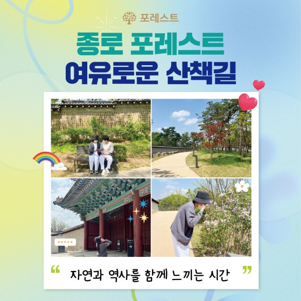종로 포레스트 여유로운 산책길 371 https://foresthospital.co.kr/jongno/main/sub01_05_5.html [종로 포레스트 여유로운 산책길을 소개합니다] 서울대학교병원 도보 3분 거리, 조금만 발걸음을 옮기면 마로니에 공원의 풍경과 창경궁, 종묘, 서울 도성길까지 펼쳐져요. 고즈넉한 고궁 산책로를 따라 걷다 보면 도심 속에서도 마음의 여유와 쉼이 찾아옵니다. 하루 한 번, 짧은 걸음이라도 포레스트와 걸어보아요:) 몸과 마음이 차분해지는 힐링의 시간이 기다리고 있어요.♥ 목록