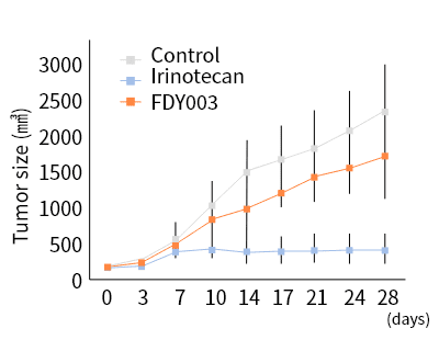 TAF(FDY003)는 동물실험 통해 종양 억제 효과 검증 完. 종양 억제 확인 및 동물 체중 변화 無.